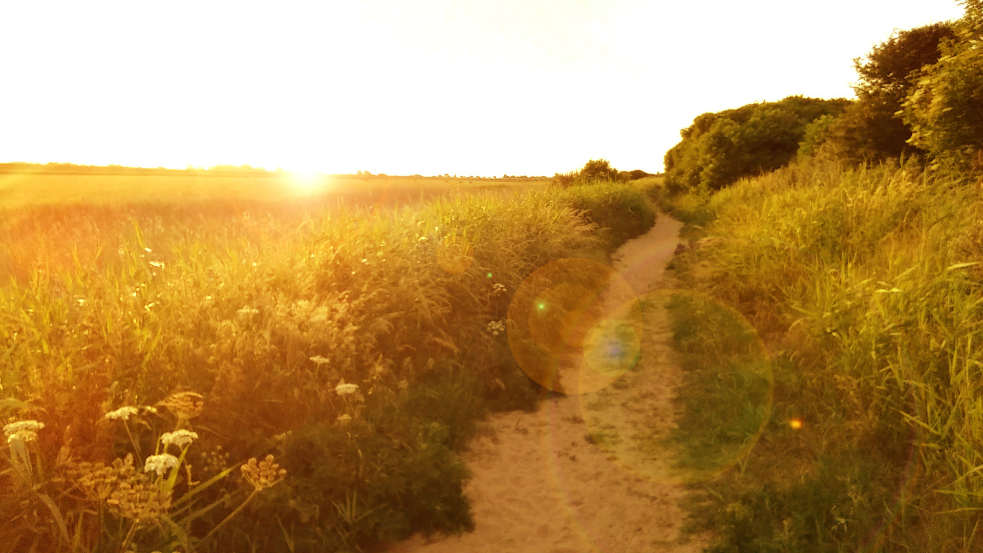 Sound recorded on an evening walk to a meadow down by the River Yare. It is mid May 2020, dusk with a pink sunset over the Old Railway Yard and the 'full flower' supermoon is about to rise. A barn owl flies up river, a heron 'barks', and there are so many bats.